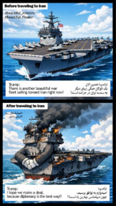 رئیس جمهور آمریکا افزود: «یک ناوگان زیبای دیگر همین حالا در حال حرکت به سوی ایران است؛ خیلی زیبا در حال حرکت است، باید دید چه میشود. امیدوارم که به توافق برسند. امیدوارم توافق کنند.»